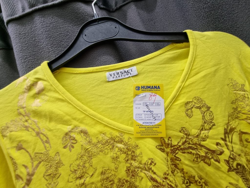 Hainele, după ce ies din centrul de sortare de la Varna, ajung inclusiv în România, în rețeaua de magazine Humana. Iar multe dintre aceste produse vestimentare provin de la marile case de modă internaționale. De exemplu, într-unul dintre magazinele deschise în București am găsit produse de brand la prețuri derizorii: un palton Armani la 209 lei și o bluză Versace la 89 de lei.