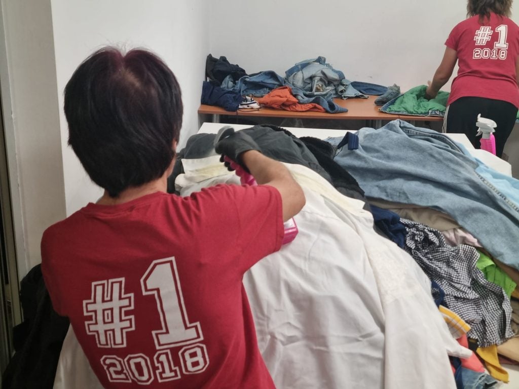 Hainele sunt sortate manual. Manager: „De această activitate se ocupă doar femeile”