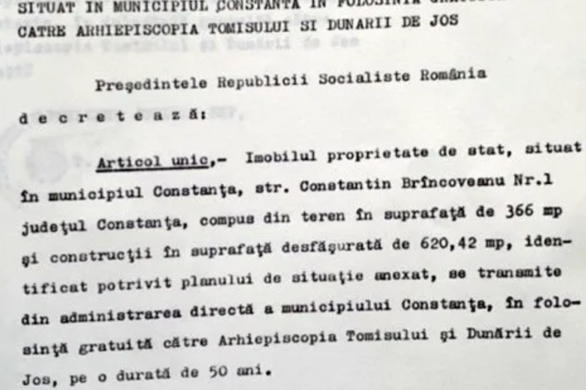 Clădirea istorică de pe Bulevardul Elisabeta nr. 21 a fost cedată Arhiepiscopiei Tomisului în urmă cu fix 50 de ani, printr-un decret semnat de fostul președinte al Republicii Socialiste România, Nicolae Ceaușescu. Termenul de grație stabilit atunci expiră pe data de 23 martie 2026, moment în care imobilul revine automat în administrarea municipalității.