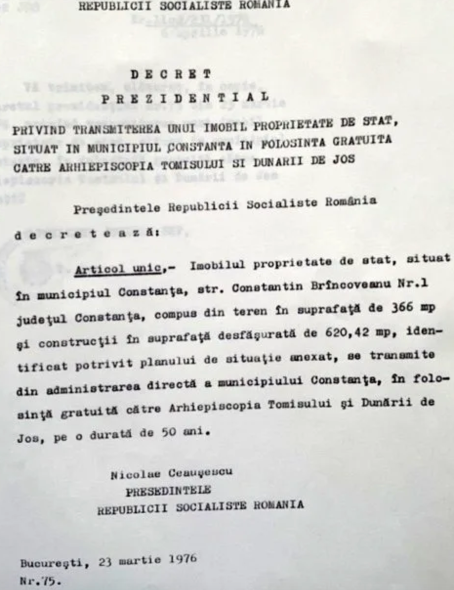 Clădirea istorică de pe Bulevardul Elisabeta nr. 21 a fost cedată Arhiepiscopiei Tomisului în urmă cu fix 50 de ani, printr-un decret semnat de fostul președinte al Republicii Socialiste România, Nicolae Ceaușescu. Termenul de grație stabilit atunci expiră pe data de 23 martie 2026, moment în care imobilul revine automat în administrarea municipalității.