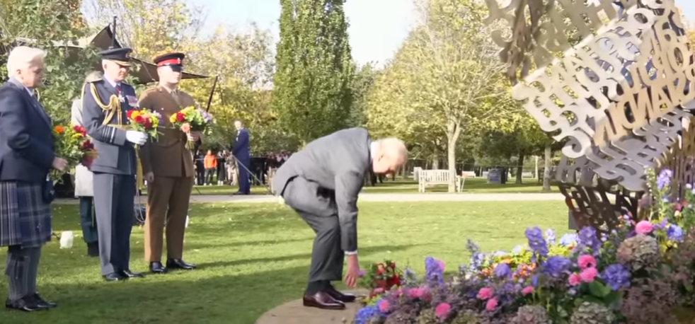 Regele a depus flori la inaugurarea oficială a primului memorial național din Marea Britanie care comemorează personalul militar LGBT, potrivit Daily Mail.