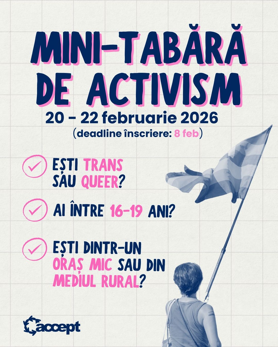 În perioada 20 22 februarie, Fundația Accept, cu finanțare de la lanțul de magazine Kaufland, organizează o Tabără de Activism LGBT, unde sunt chemați să parti